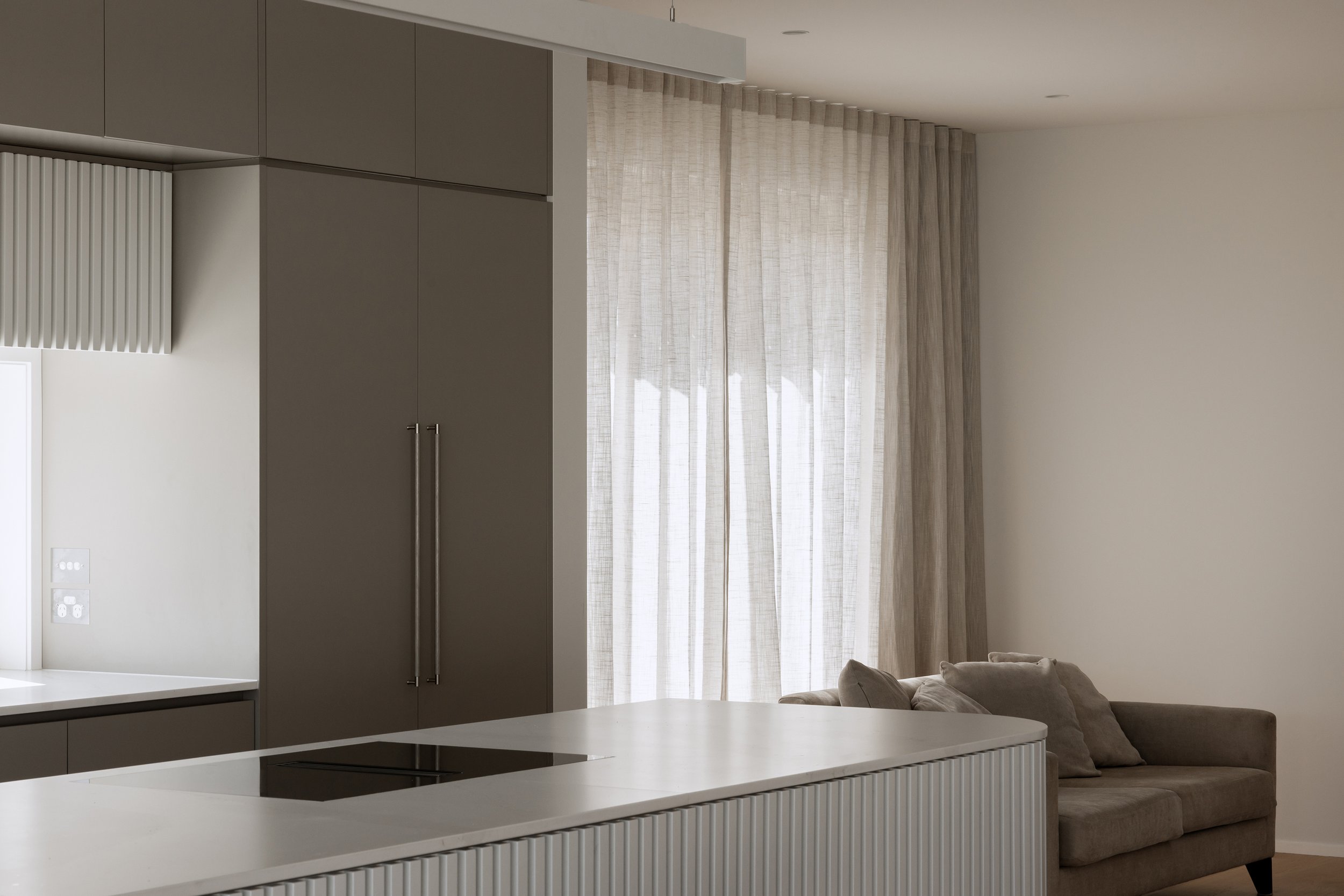 Completed in 2023, this home positioned in a secluded Mt Maunganui location embodies a ‘Californian Dreamin’ lifestyle with its vertical cedar cladding and screens, and fresh white brick textures. Welcomed by a soft curved central entry, the two articulated splayed shape divide the public and sleeping spaces.